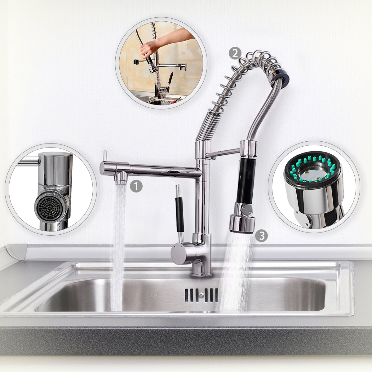Kitchen sink mixer faucet pull out sparyer tap single handle chrome brass. Compact and beautifulmimi818we needed to replace an old faucet that was no long functioning correctly. 37% off kitchen sink mixer faucet pull out sparyer 360 degree rotation hot & cold water mixer crane tap with dual spout chrome brass brushed tap collapsible 0 review cod. Moen kitchen faucet leaks at pull out spout. Love the pull out spray.5.