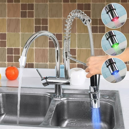 LED Spout Chrome Finished Deck Mounted Swivel Spout Pull ... from ae01.alicdn.com You can adjust the temperature effortlessly with the lever. Kablle commercial pull out kitchen sink faucet (kf1705b05). Dual function spout sprayer kitchen faucet. Forious touchless pull out kitchen faucet with pull down sprayer. When compared with pull down kitchen faucets, pull out faucets offers less splashing of water.this is really an advantage as the kitchen and sink looks. Customer service comes through again. Offers more room for a variety of sink activities. All of these problems can be corrected.